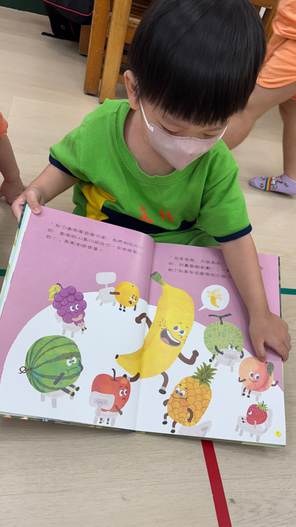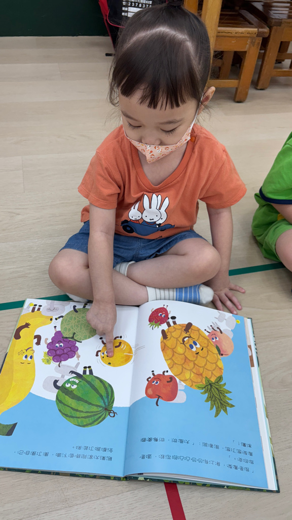 相簿名稱: (寶寶班)從繪本中認識各式水果,並比著自己最愛水果是什麼🤔