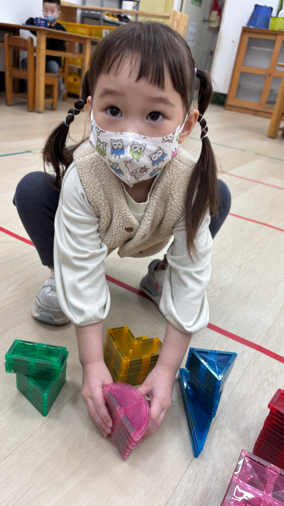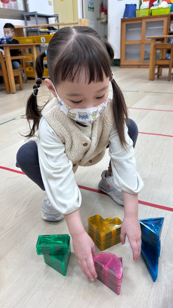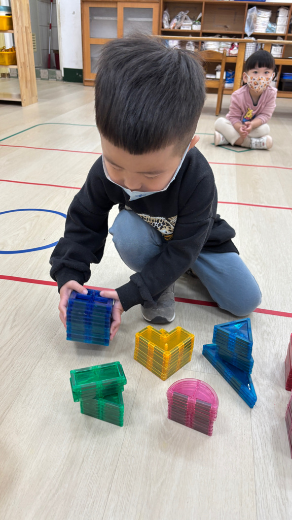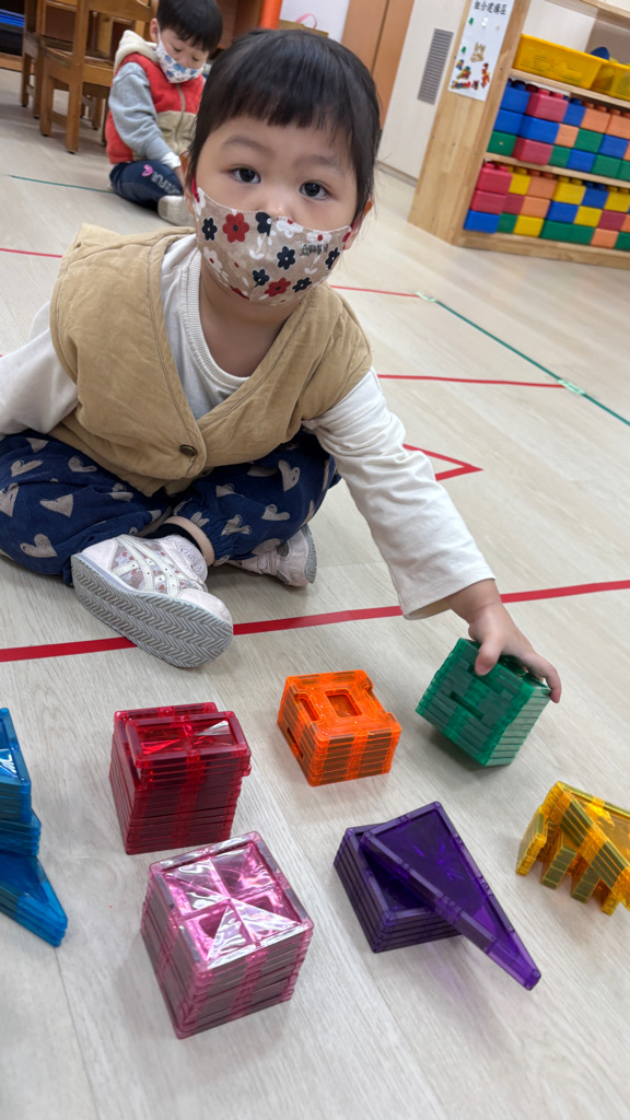 相簿名稱: (寶寶班)複習顏色並挑選愛的磁力片組裝玩