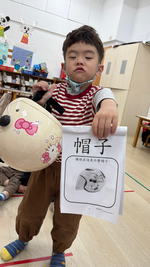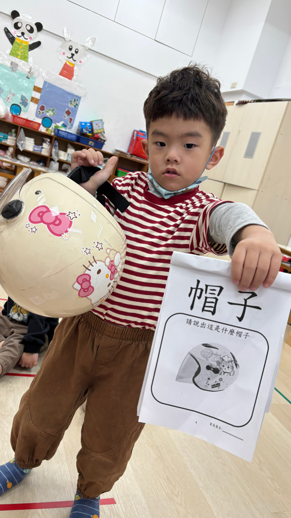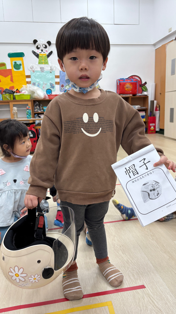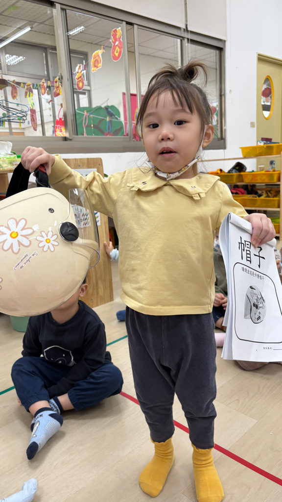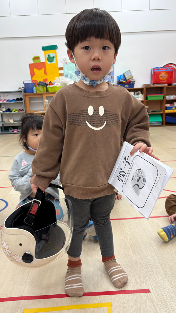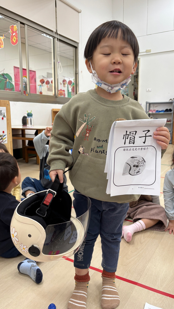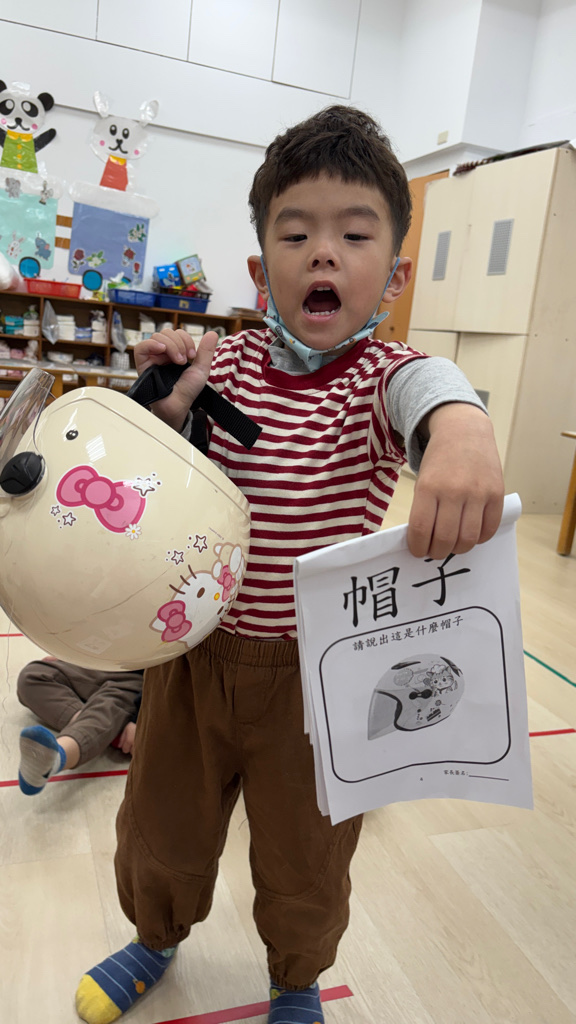 相簿名稱: (寶寶班)帽子有很多種,我拿的是坐機車安全帽