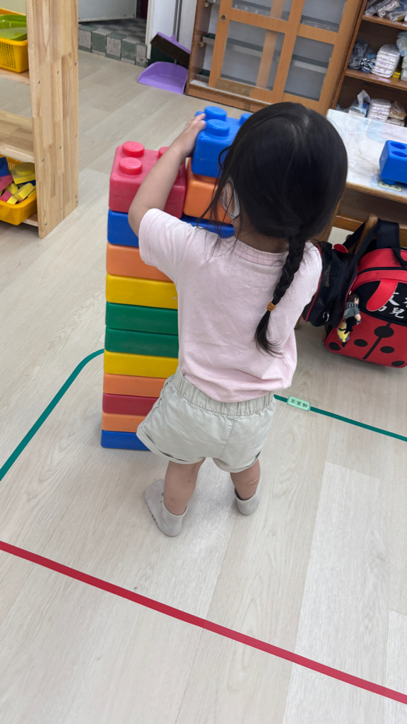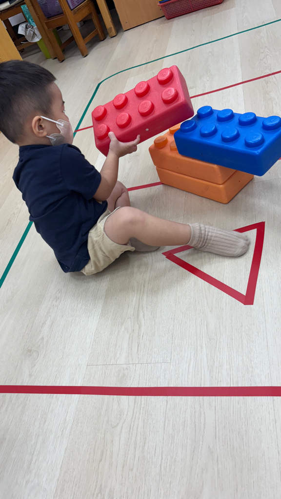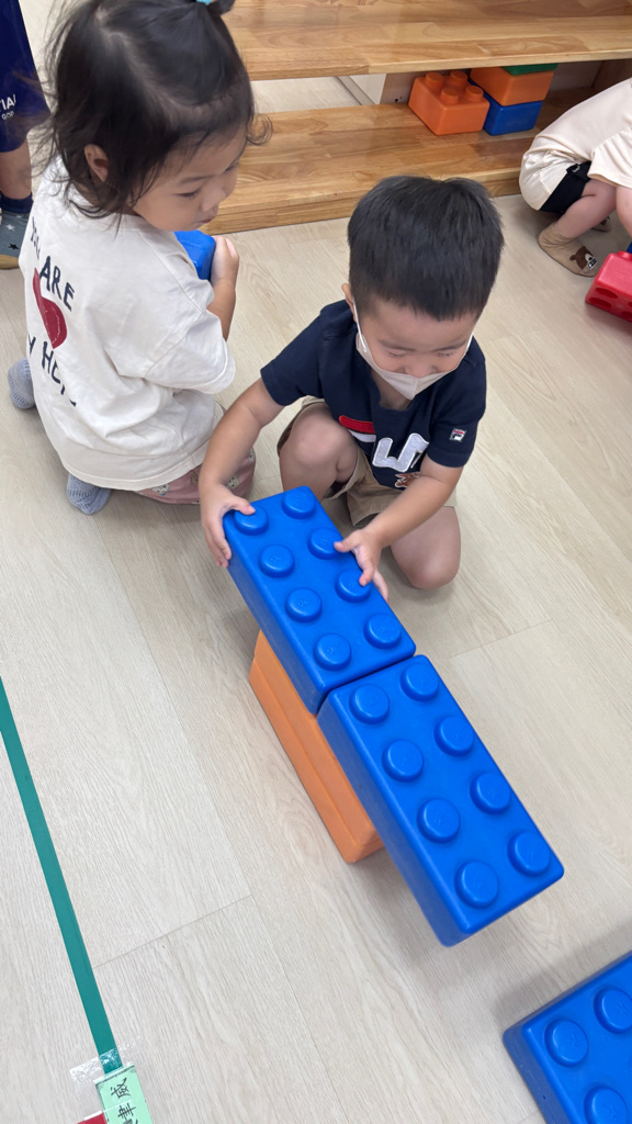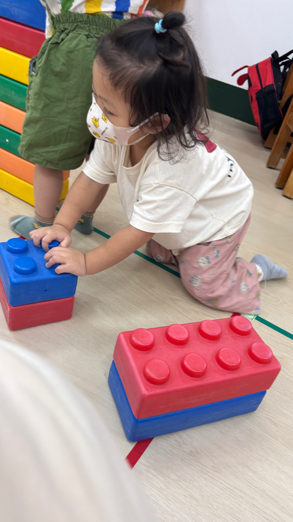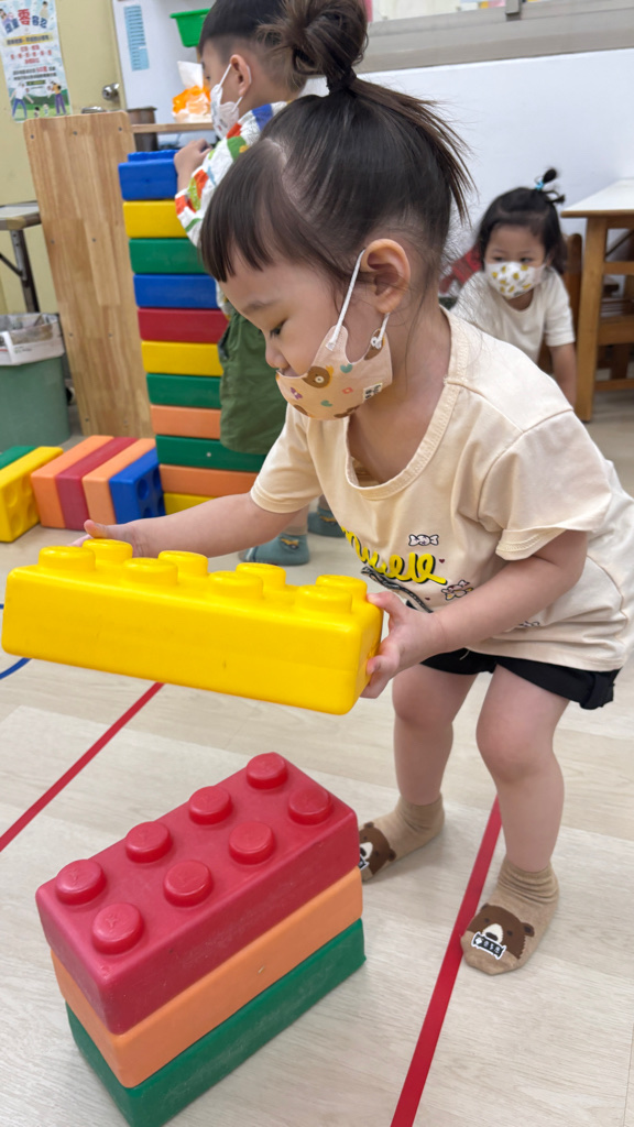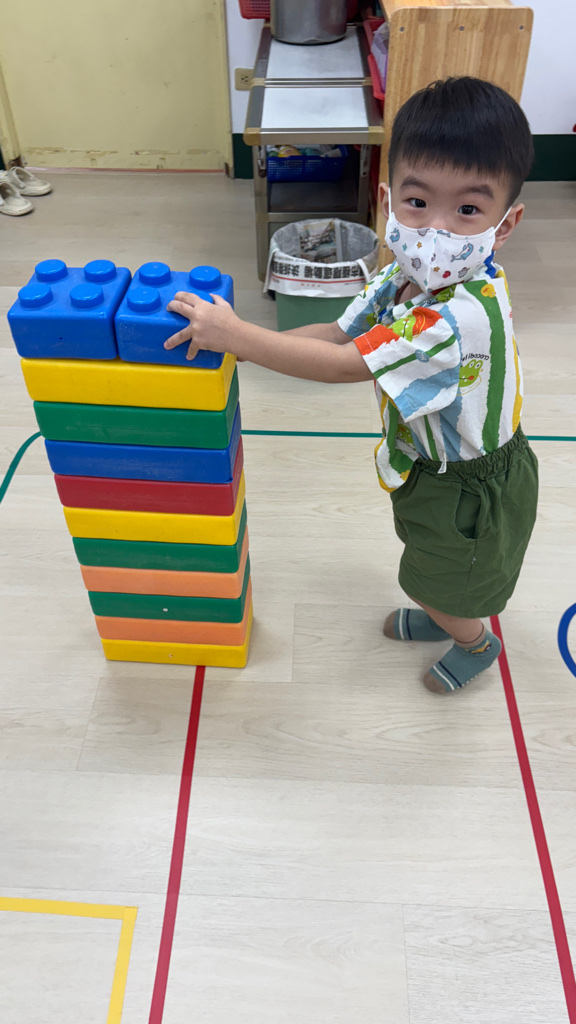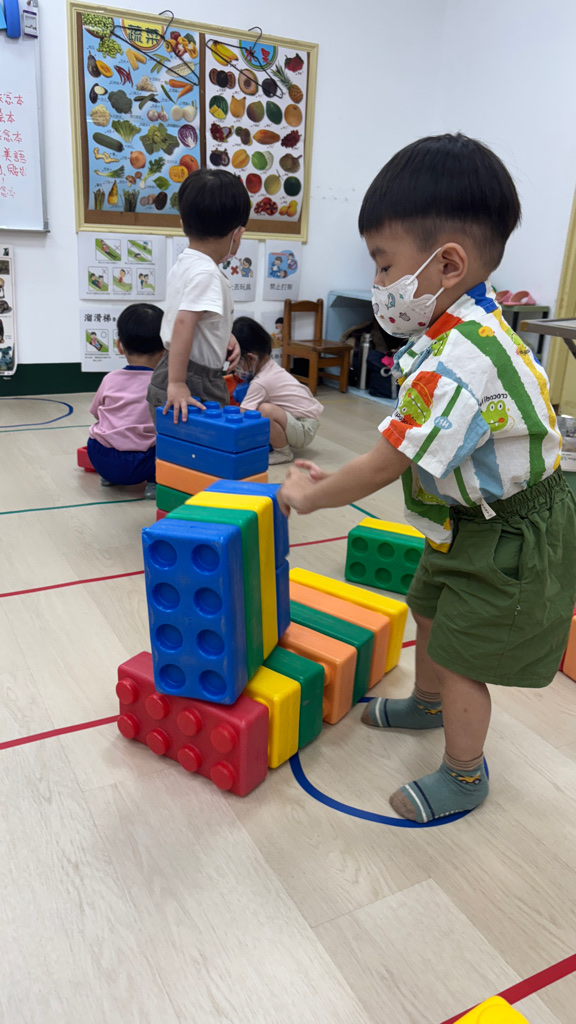 相簿名稱: (寶寶班)認識大積木的顏色並和同學一起組裝開心玩🥳