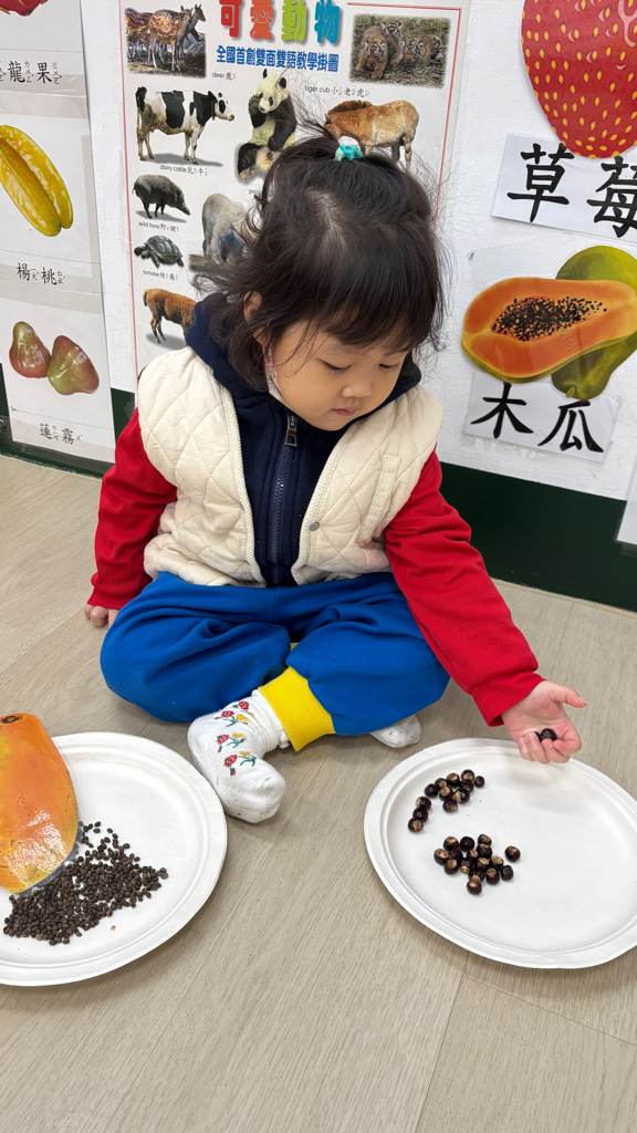 相簿名稱: (寶寶班)觀察與觸摸水果種籽,分享特徵與種籽是什麼水果唷
