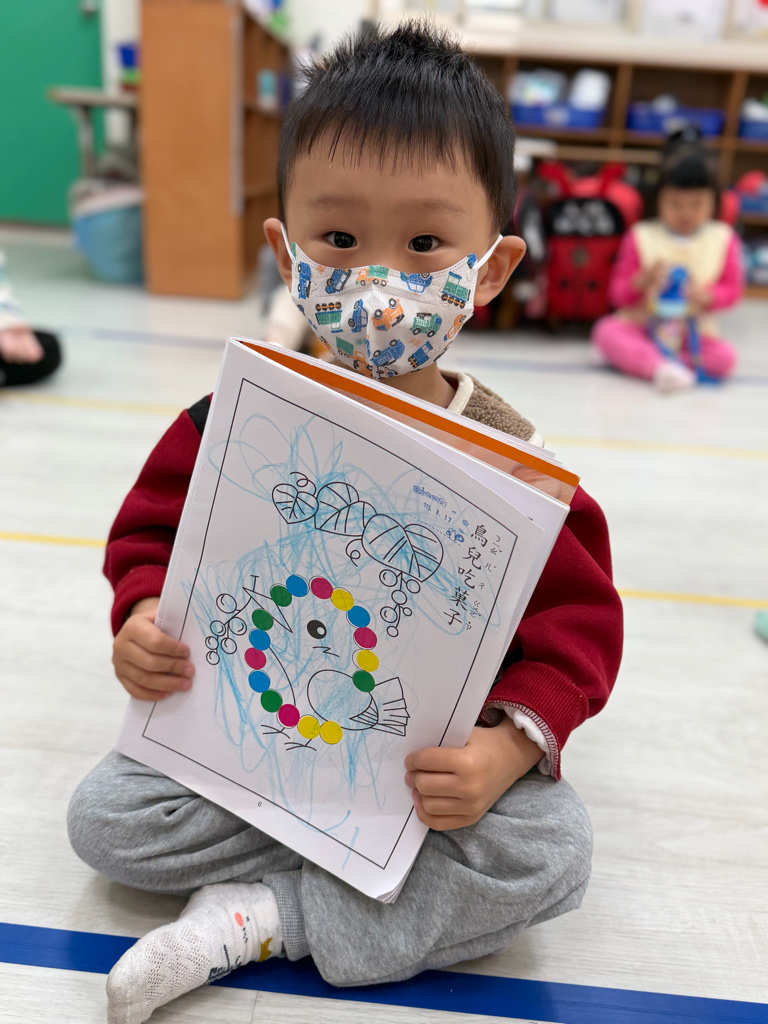 相簿名稱: 甜甜班-小鳥吃果子貼貼畫畫完成了