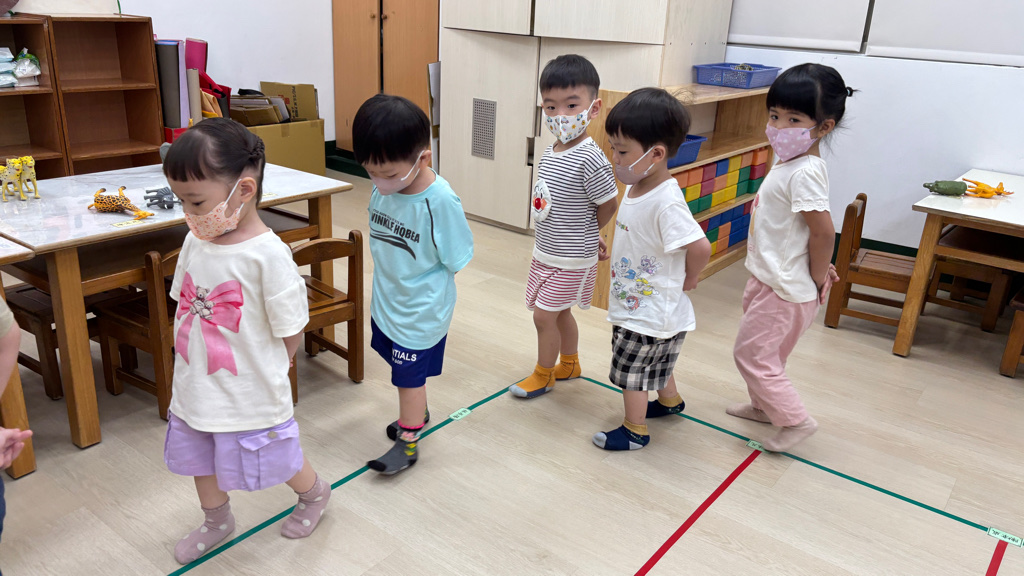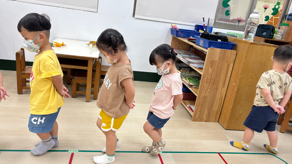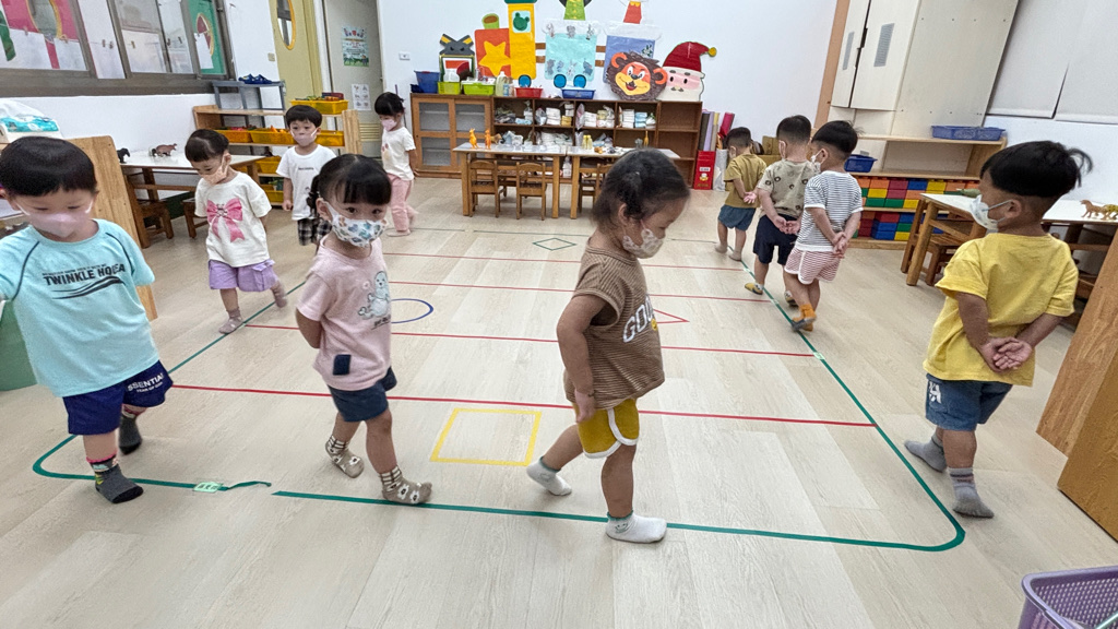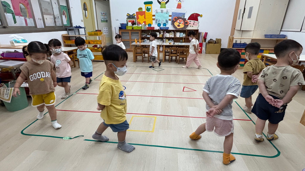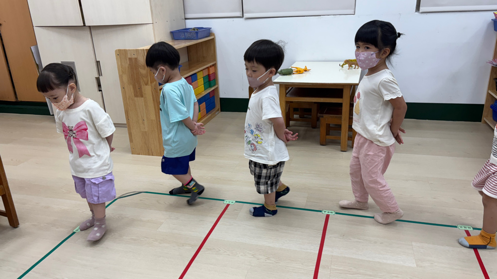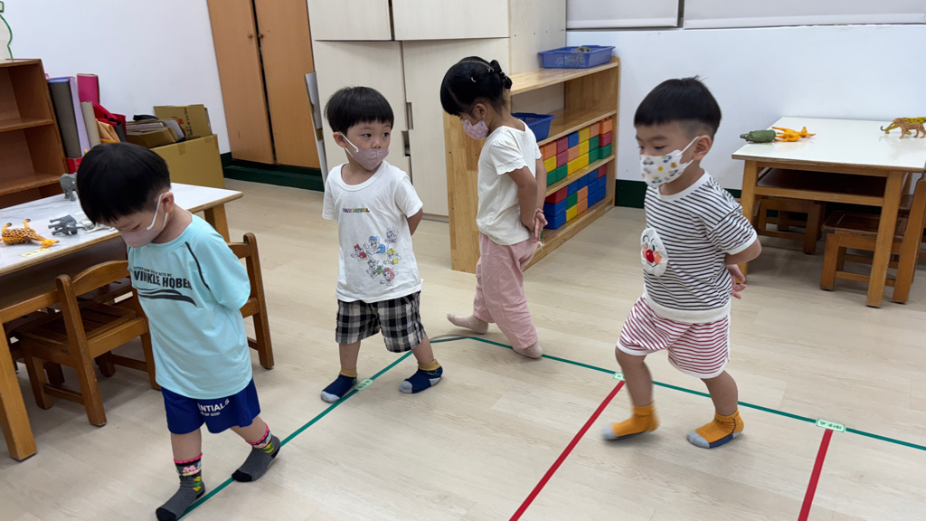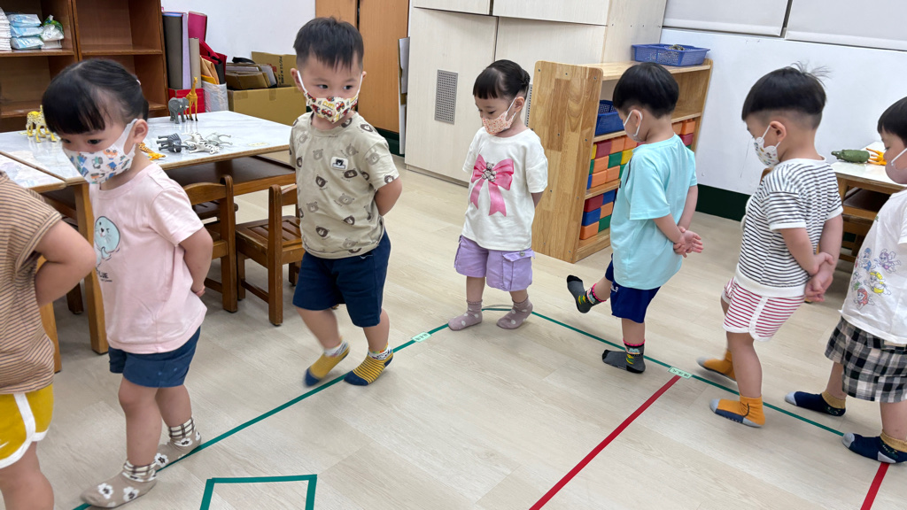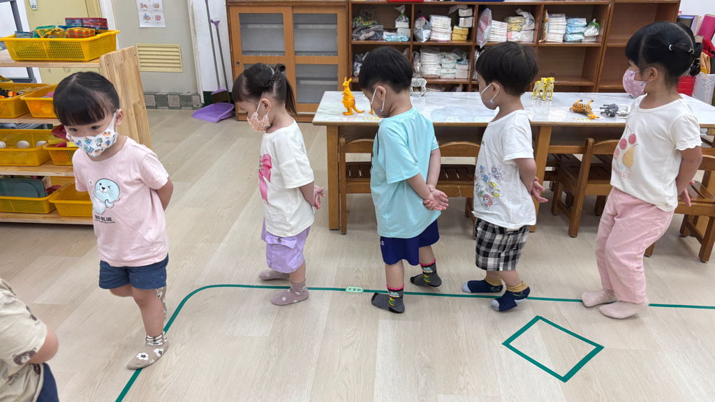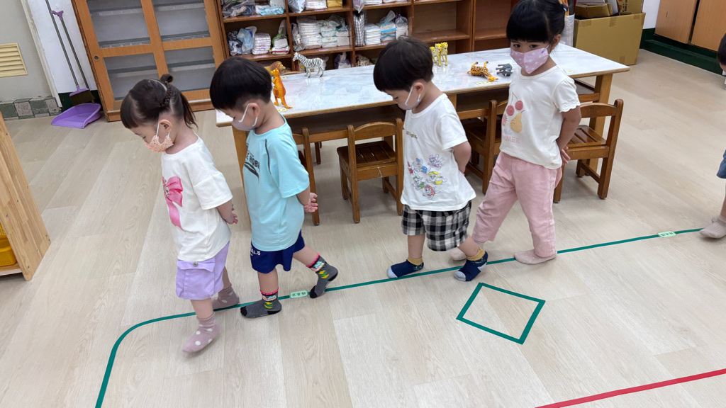 相簿名稱: (寶寶班)聆聽輕音樂並走在線上,培養專注力