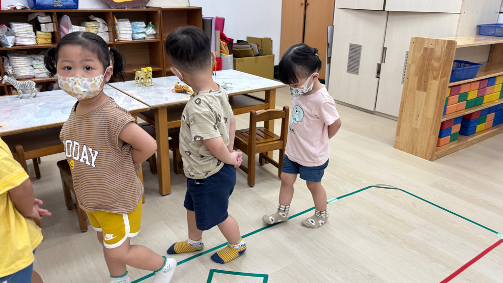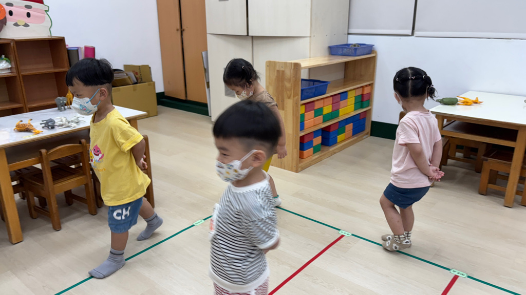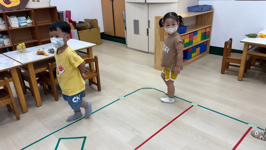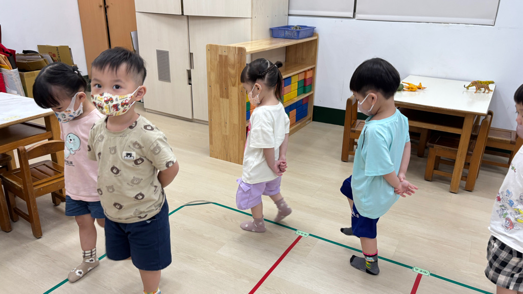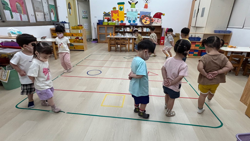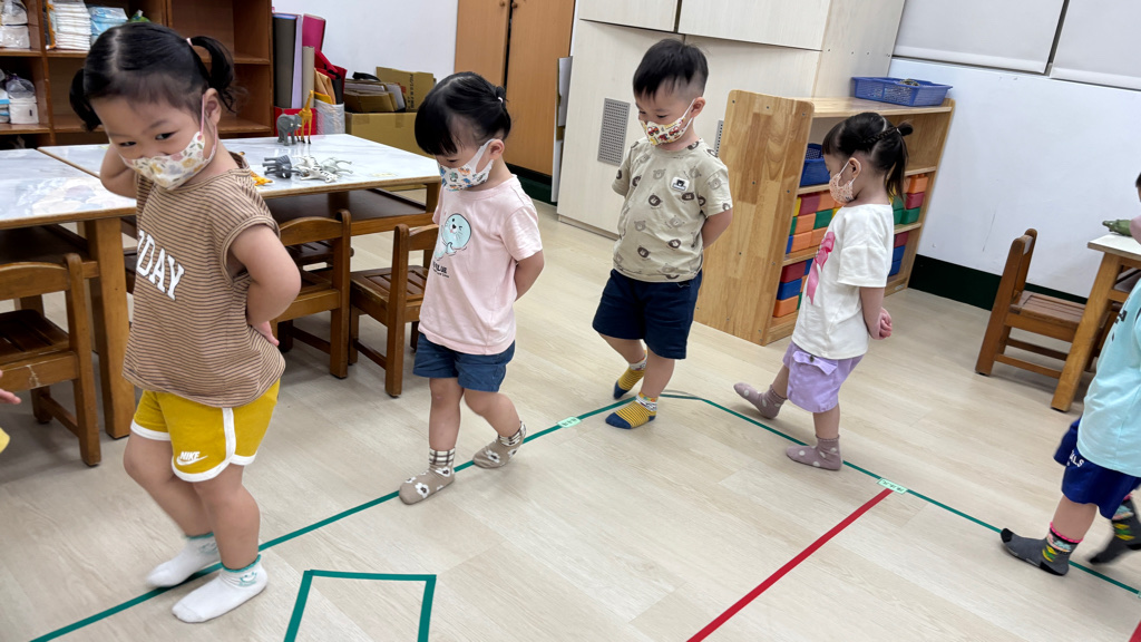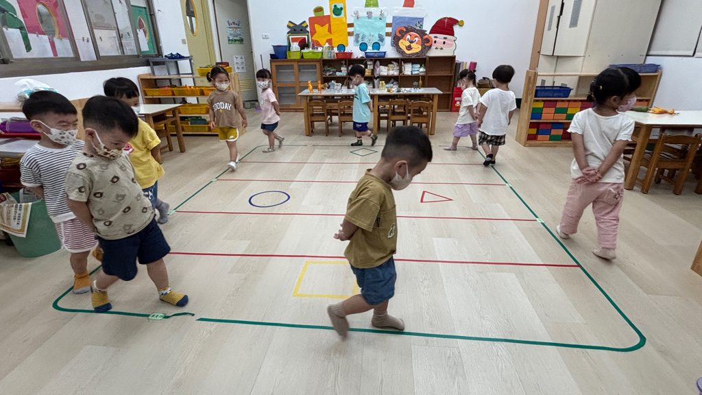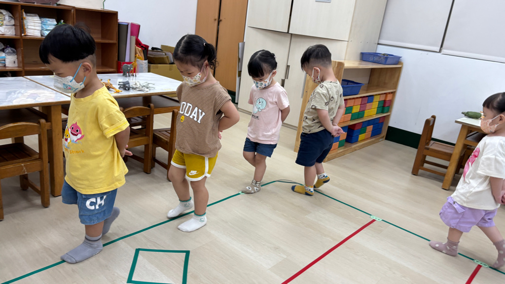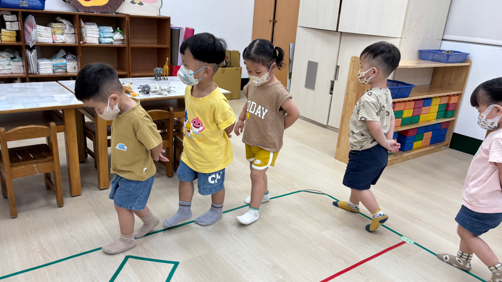 相簿名稱: (寶寶班)聆聽輕音樂並走在線上,培養專注力