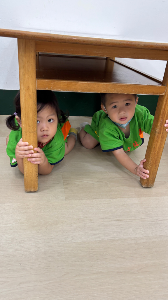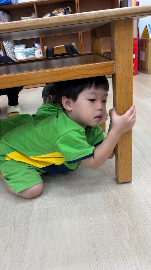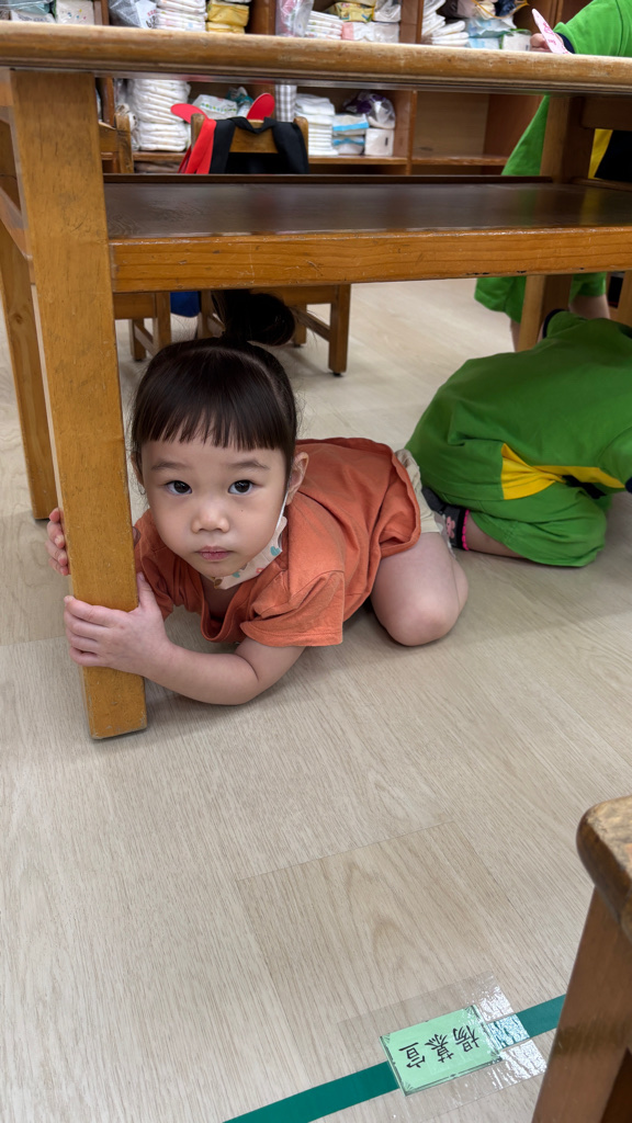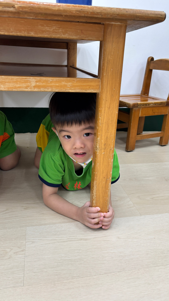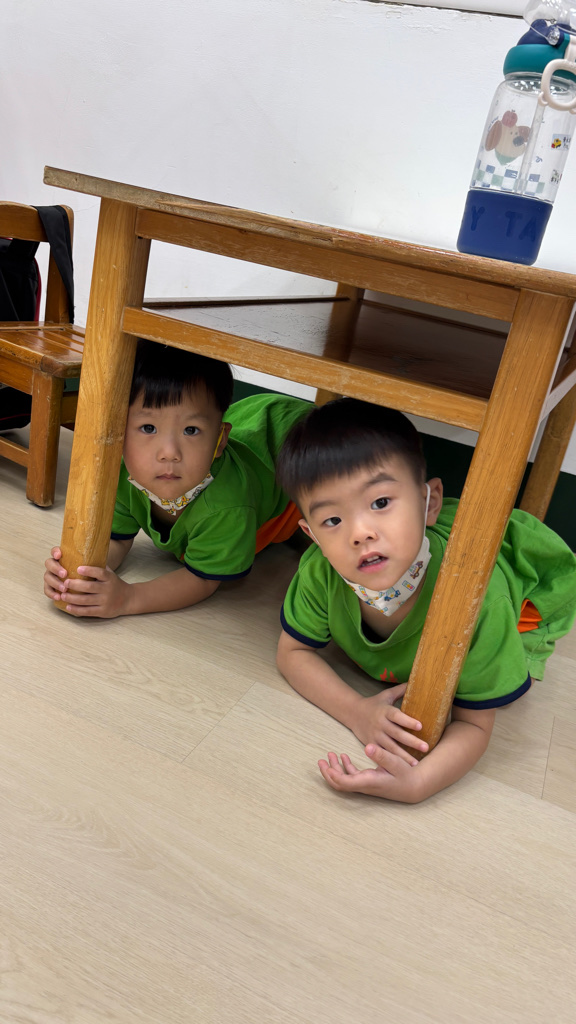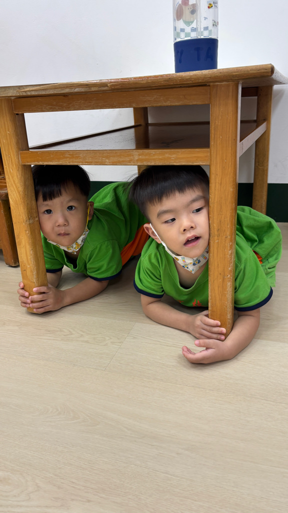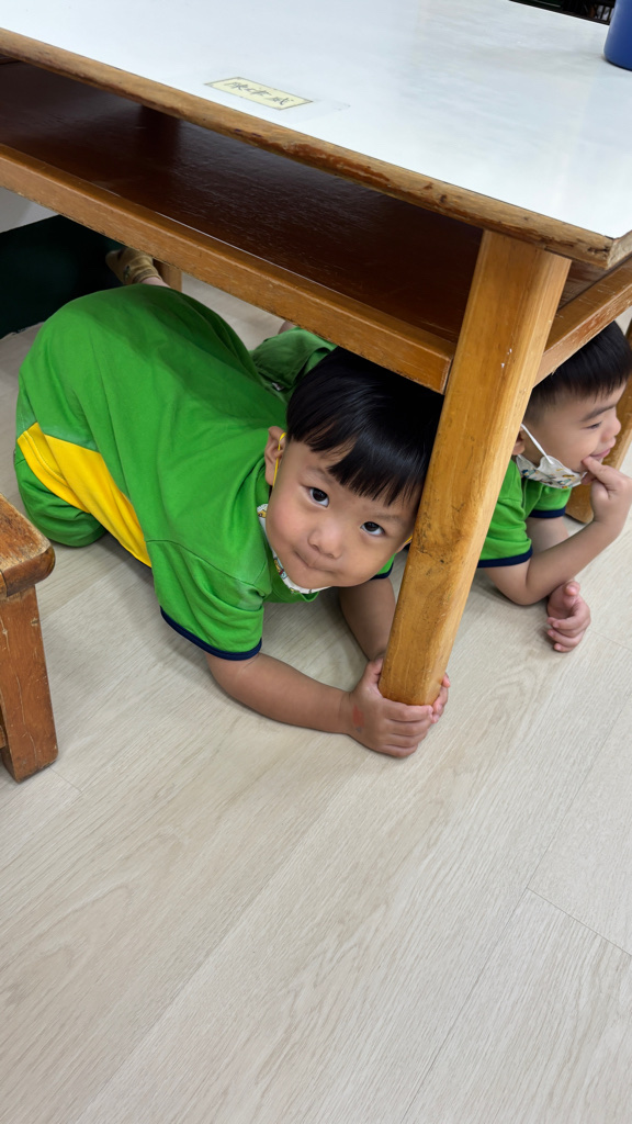 相簿名稱: (寶寶班)實際演練並體驗找桌子趴下掩護動作