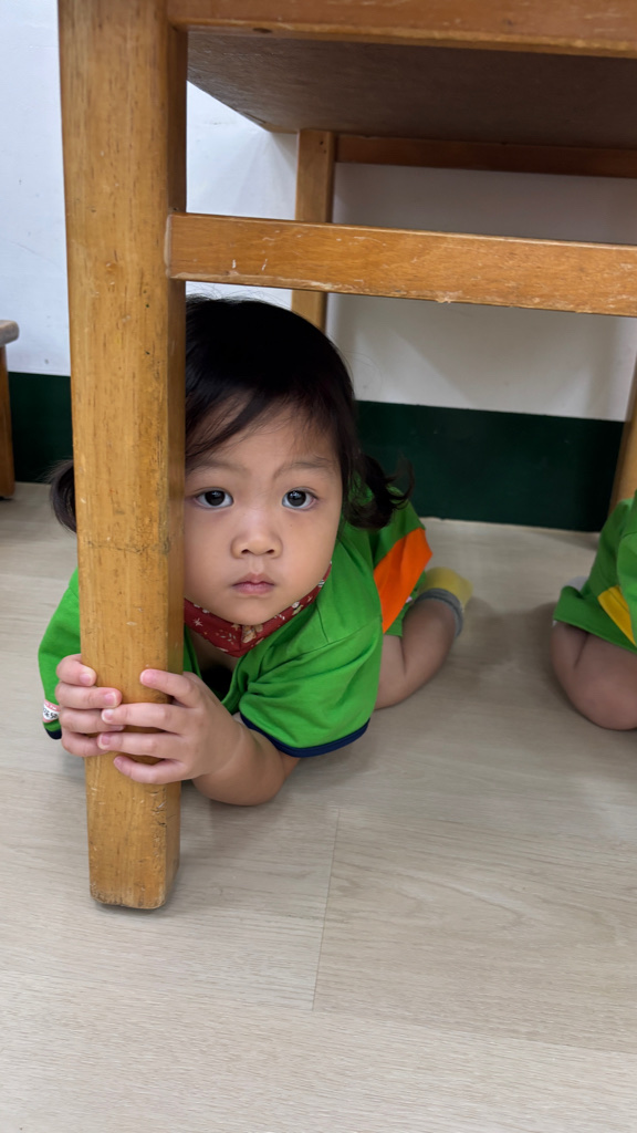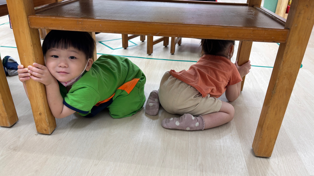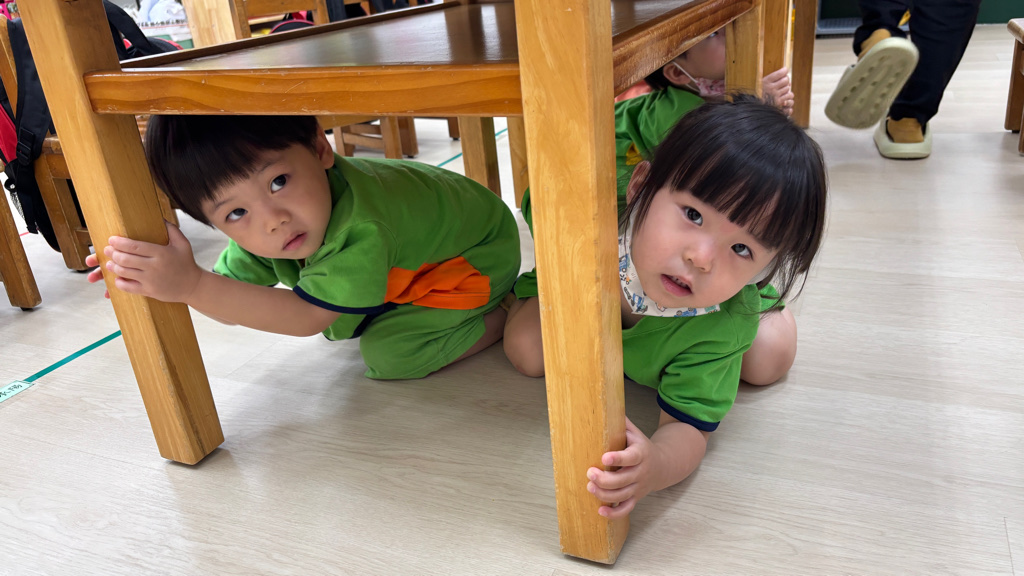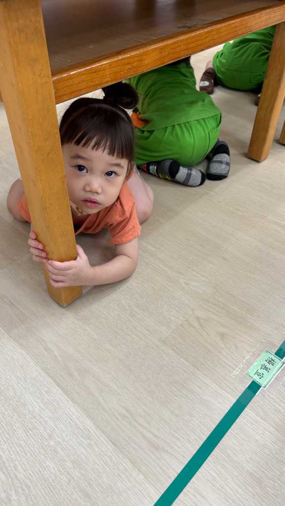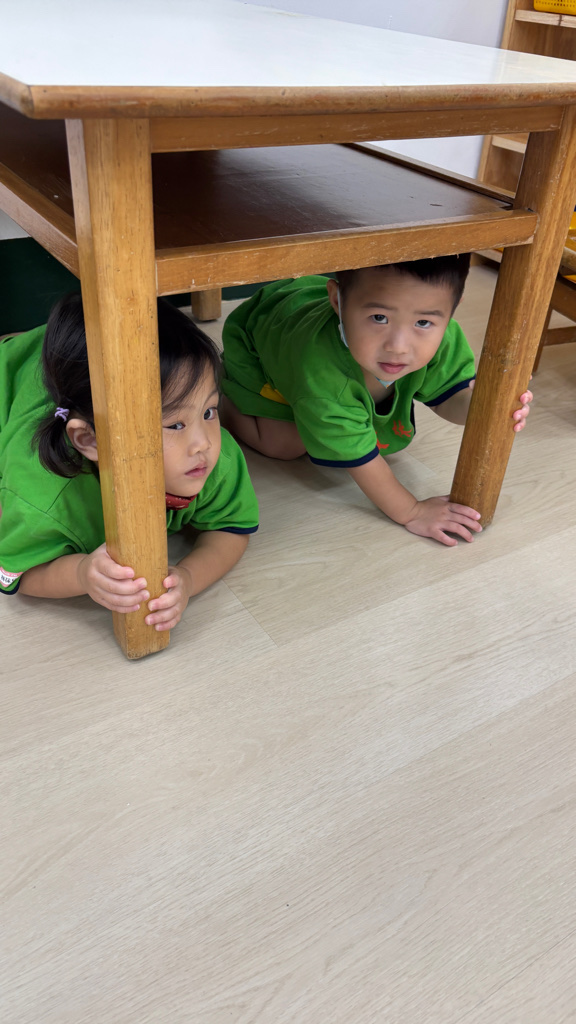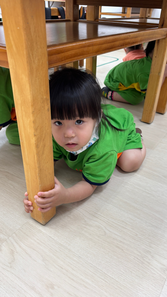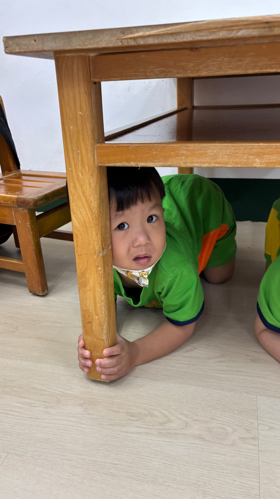 相簿名稱: (寶寶班)實際演練並體驗找桌子趴下掩護動作