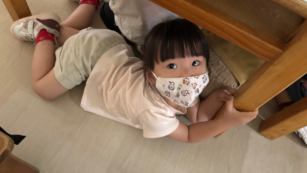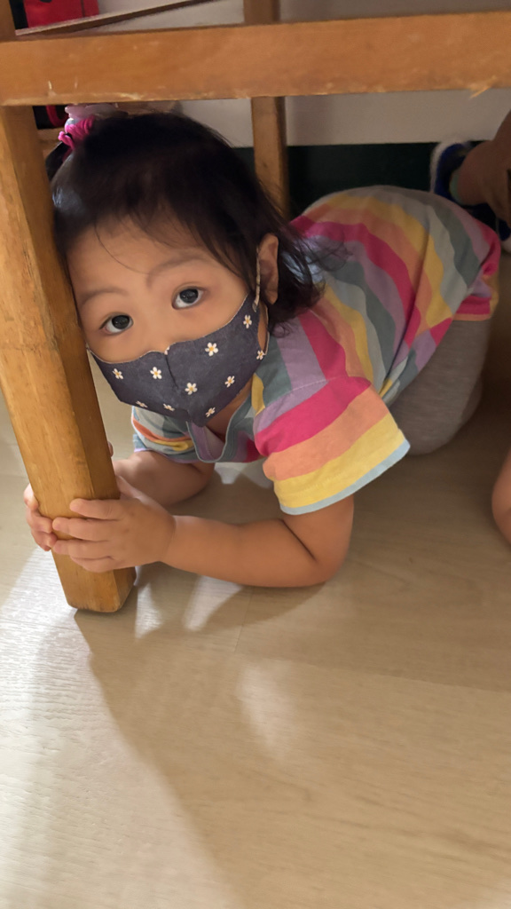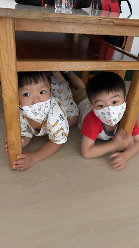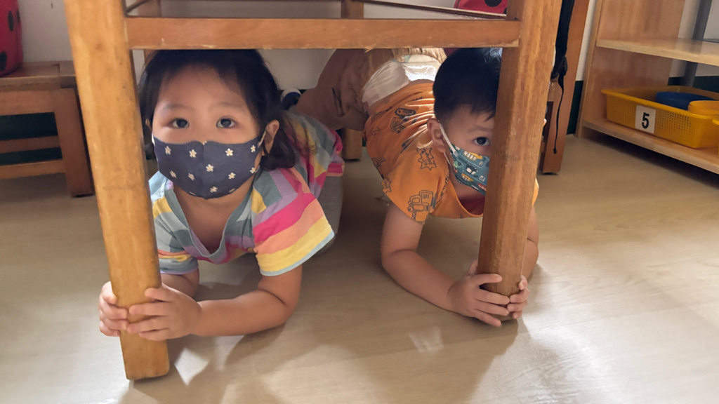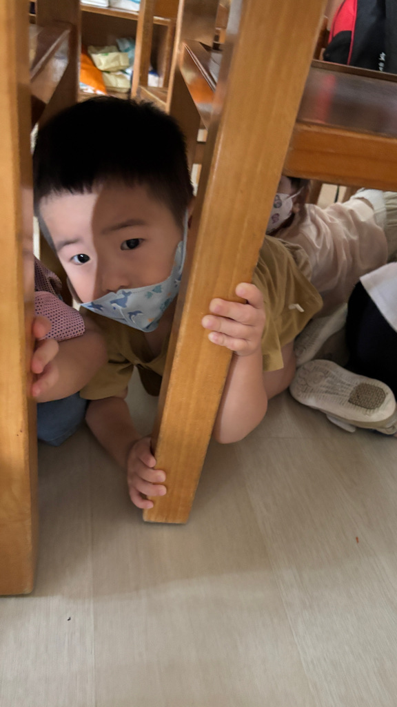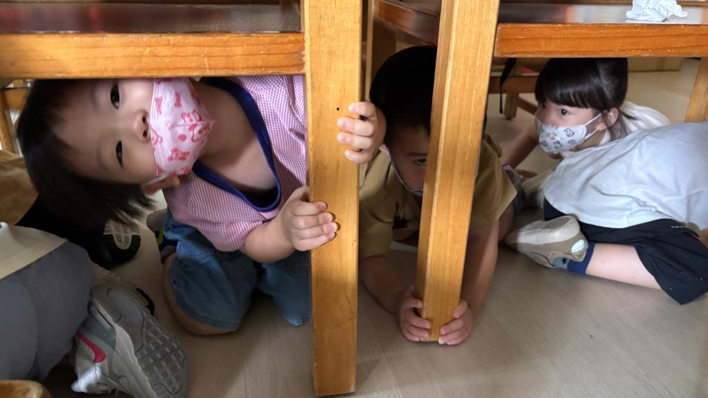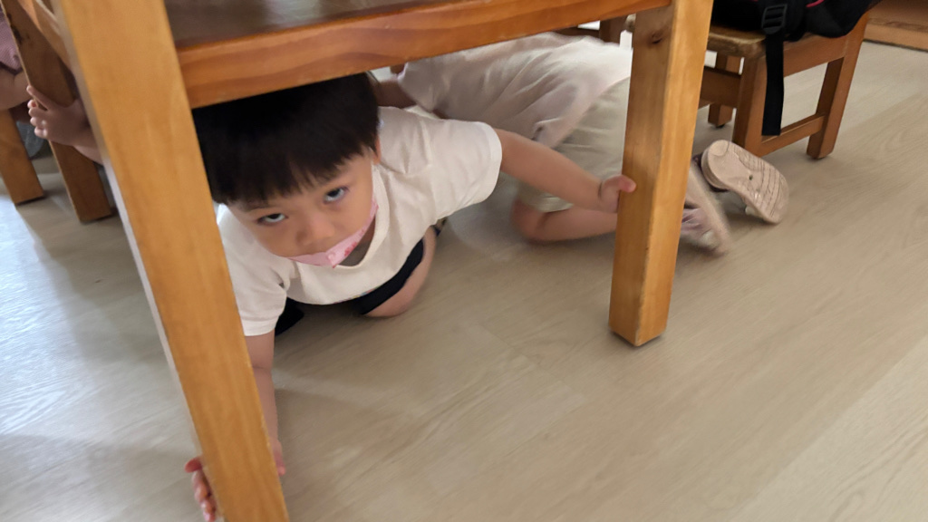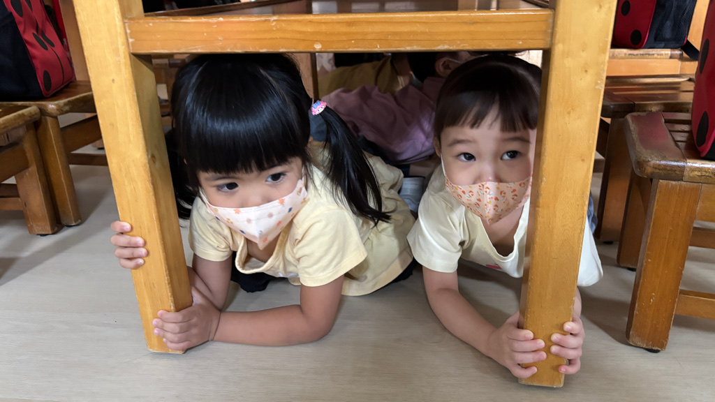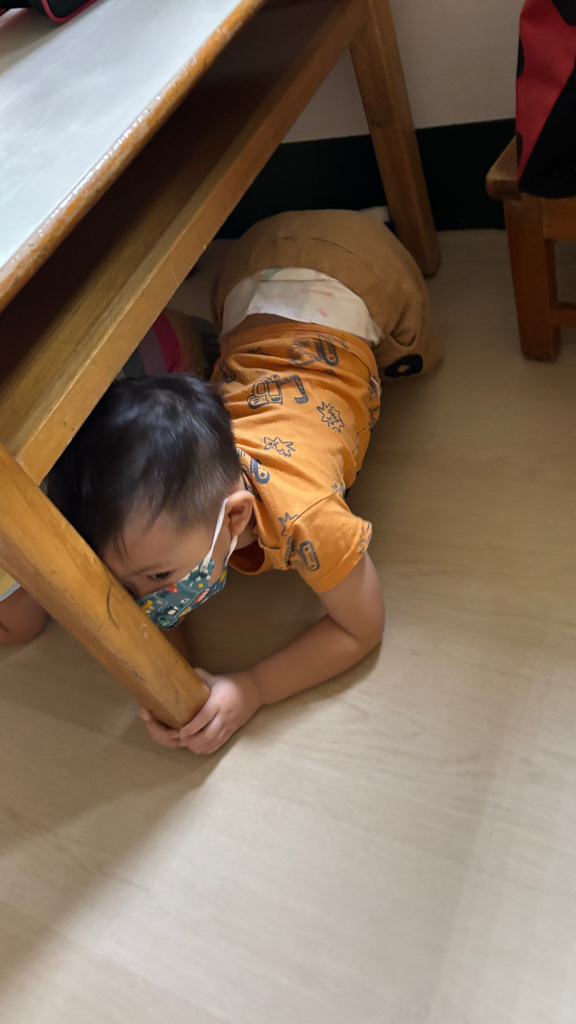 相簿名稱: (寶寶班)進行防震演習的趴下 掩護 穩住三步驟