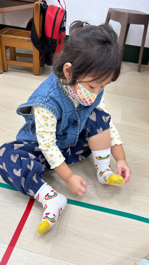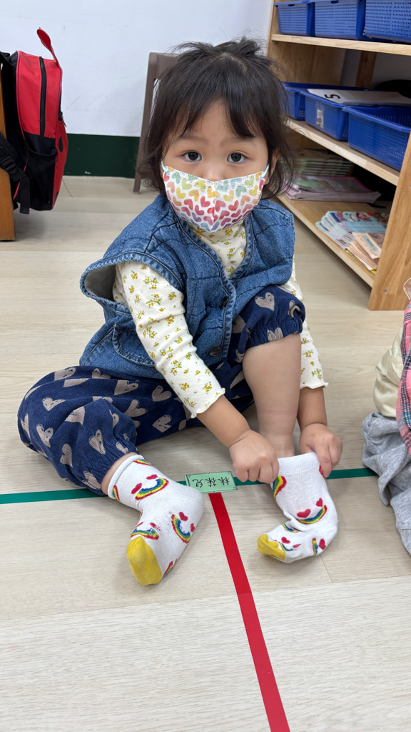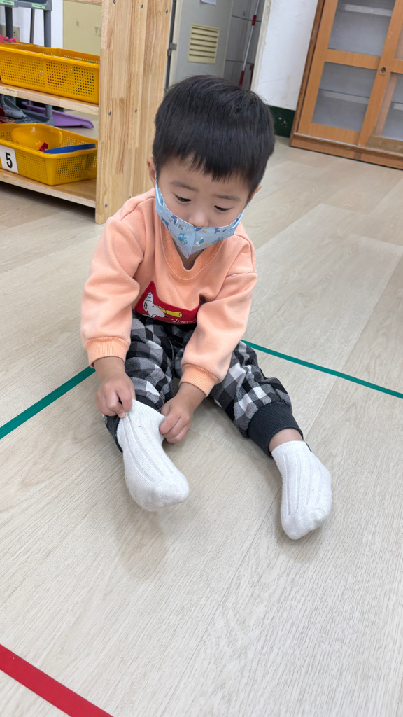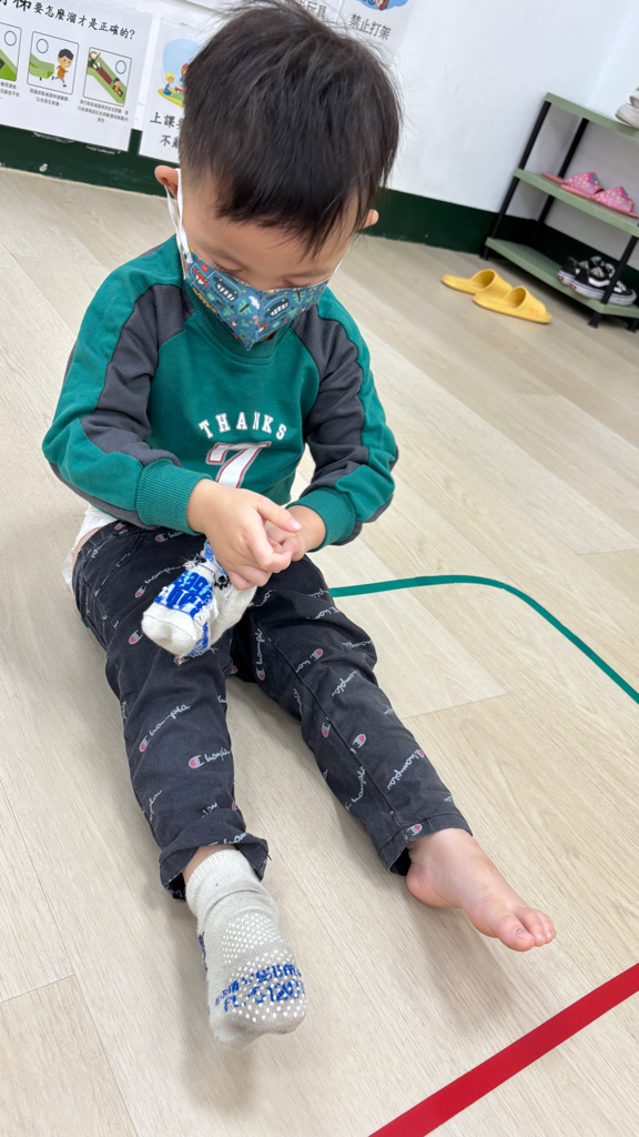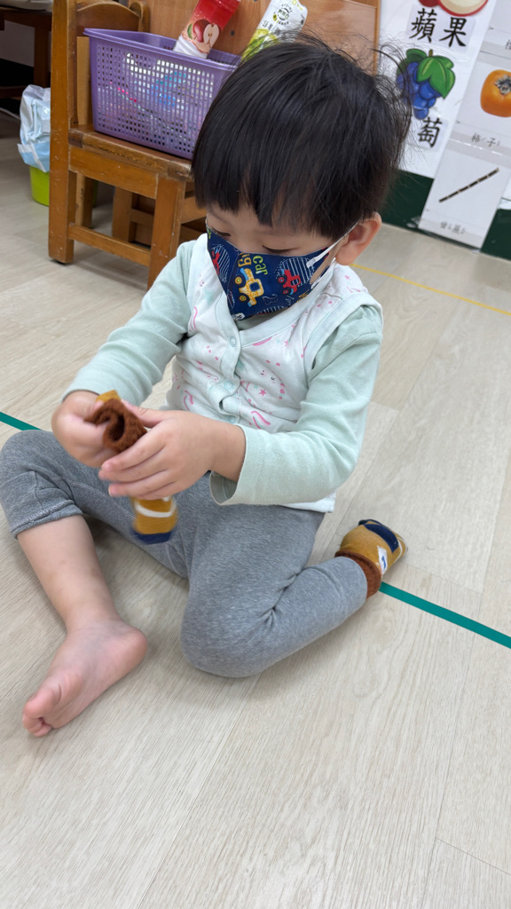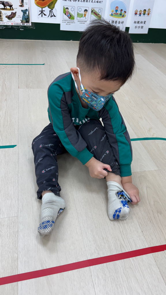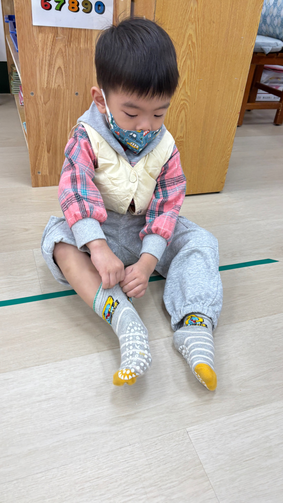 相簿名稱: (寶寶班)當我們一起練習穿脫襪子,認真學習很棒喔!