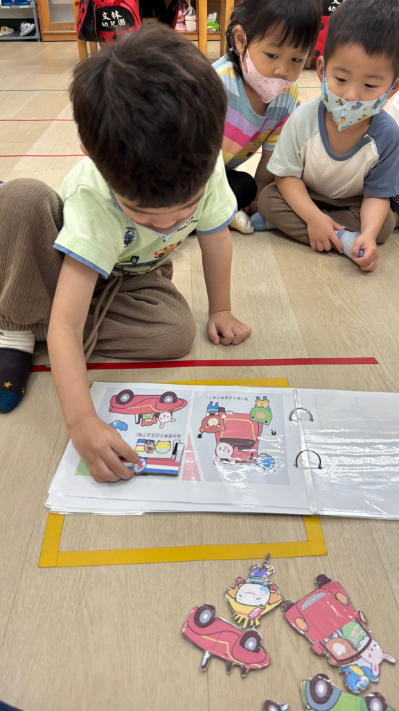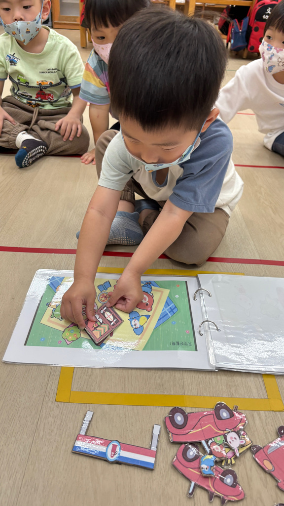 相簿名稱: (寶寶班)聆聽小汽車繪本並操作磁性圖卡